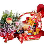 Cesta de Cafe da Manhã com Rosa Presente