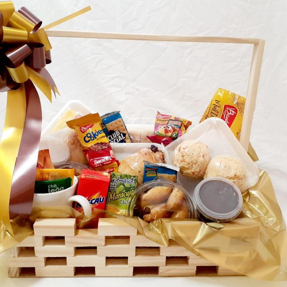 Delicie-se com nossa incrível Cesta de Café da Manhã personalizada, repleta de opções para tornar a manhã ainda mais prazerosa e saborosa. A cesta é composta por um suco de frutas frescas (200 ml), um achocolatado Nescau (200 ml), 2 sachês de chá para aquecer a alma, além de um sachê de açúcar. Para tornar a refeição ainda mais completa, incluímos um pão de leite, uma porção de mussarela e presunto e um croissant fresquinho. A diversidade da cesta continua com um pão de queijo bem mineirinho, uma fatia de bolo delicioso, o tradicional pão doce e biscoitos incrivelmente saborosos de goiaba e orégano para um lanche rápido. Incluímos, ainda, torradas da Bauducco, perfeitas para comer acompanhadas do café ou chá, e duas unidades de biscoitos Club Social. Para quem gosta de doces, incluímos um cookie delicioso da Bauducco, um bolinho para um lanche rápido e um chocolate premium (Sonho de Valsa ou Ouro Branco). E temos um brinde especial: uma caneca linda para você desfrutar de suas bebidas quentes com qualidade. Esta cesta é um convite para começar o dia da melhor maneira possível!