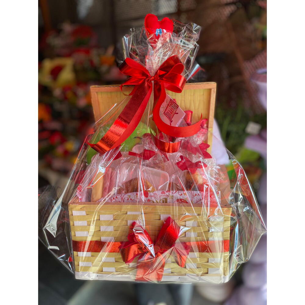 A Cesta de Café Luxo é um verdadeiro tesouro matinal. Reúne uma diversidade de 7 tipos de pães e frutas frescas, acompanhados por uma bandeja de frios selecionados. Delicie-se com uma caixa de bombons Garoto e pacotes variados de bolachas Maisena, Maria, doce e salgada. Aproveite pacotes de torradas, teens e pão de mel. Refresque-se com um suco de laranja, vitamina de frutas, achocolatado, bebida de morango e uma caixinha de água de coco. Saboreie um pacote de cookies, acompanhado de uma pelúcia e um vaso de flores ou mini buquê, dependendo da melhor opção do Dia. Conte com maioneses, Iô Iô cream, sachês de açúcar, geleia, chá, uma caneca ou xícara, bolacha recheada, bolinhos, Look, barrinha Bauducco, trufa Montevérgina, mini cacto ou suculenta. A cesta é cuidadosamente enfeitada com celofane e laços, em um charmoso cesto Baú. Na eventual falta de um produto, será substituído por outro do mesmo valor. A foto é meramente ilustrativa.