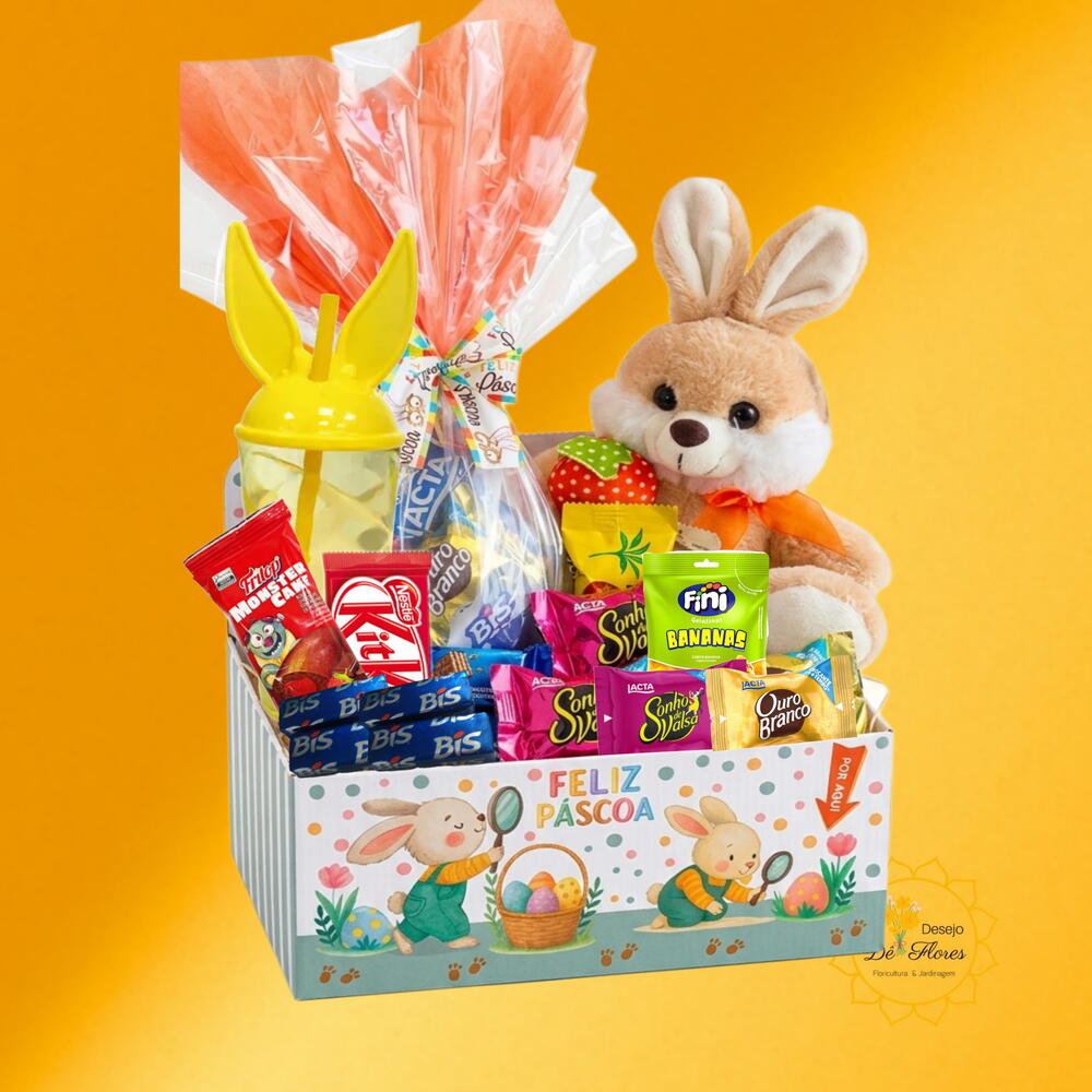 Transforme a Páscoa dos pequenos em um momento inesquecível! Esta box foi criada para unir a magia da data com o sabor dos chocolates mais desejados. Além das guloseimas, o presente traz um amiguinho de pelúcia e um copo exclusivo para acompanhar as brincadeiras muito depois que os chocolates acabarem. O que vem na Box: Pelúcia de Coelhinho super macio, Copo Decorativo com orelhinhas, Fini Bananas, KitKat, Bis, Sonho de Valsa, Ouro Branco e um Ovo de Páscoa surpresa! Diferencial: Caixa temática decorada e embalagem com laço festivo. Dica: O presente completo que une brinquedo, utilitário e doçuras.