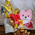 embalagem - 1 un. cesta - 1 un. laço - 1 un. bombom - 2 un. kitkat - 1 un. urso 20cm - 1 un. ovo de páscoa 150g - 1 un.
