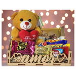 Cesta de Chocolates " Amor " com Pelucia com Coração "Amor" Para Encantar