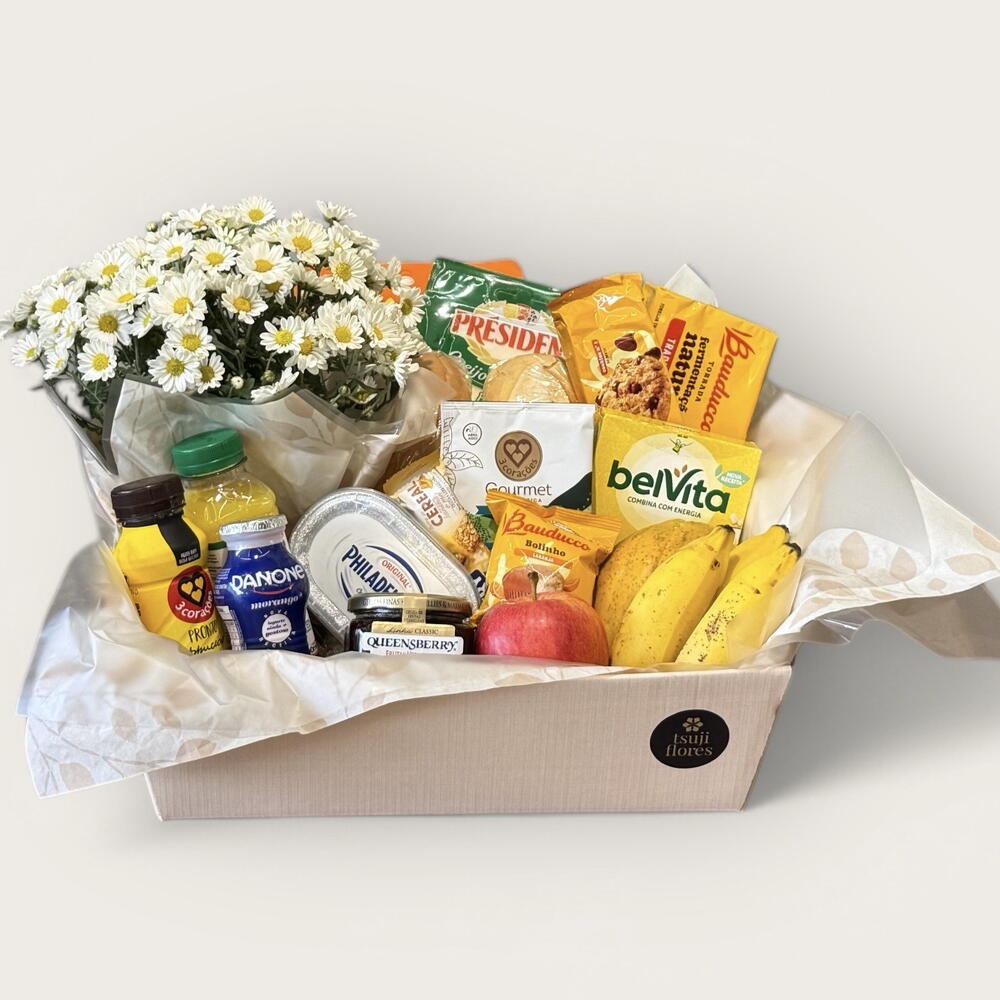 Cesta de Flores e Cafe da Manhã