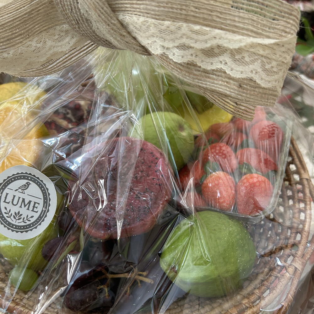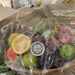 rosa - 12 un. cesta - 1 un. laço - 1 un. embalagem celofane - 1 un. laço rústico - 1 un. embalagem karft - 1 un. folhagens especias - 1 un. frustas frescas (verificar disponibilidade) - 1 un.
