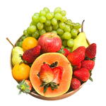 maçã - 1 un. cesta - 1 un. pera - 2 un. uva - 1 un. mamão - 1 un. morango - 1 un. tangerina - 2 un.