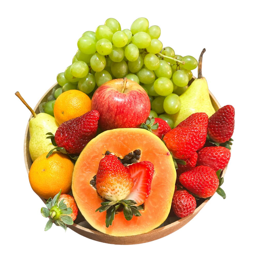 Delicie-se com a nossa Cesta de Frutas composta por frutas frescas e selecionadas especialmente para você! Contendo 1 maçã suculenta, 2 peras doces, uma porção de uvas, 1 mamão maduro, uma porção de morangos e 2 tangerinas refrescantes, tudo lindamente disposto em uma cesta charmosa. Perfeito para presentear ou desfrutar de um lanche saudável e nutritivo.
