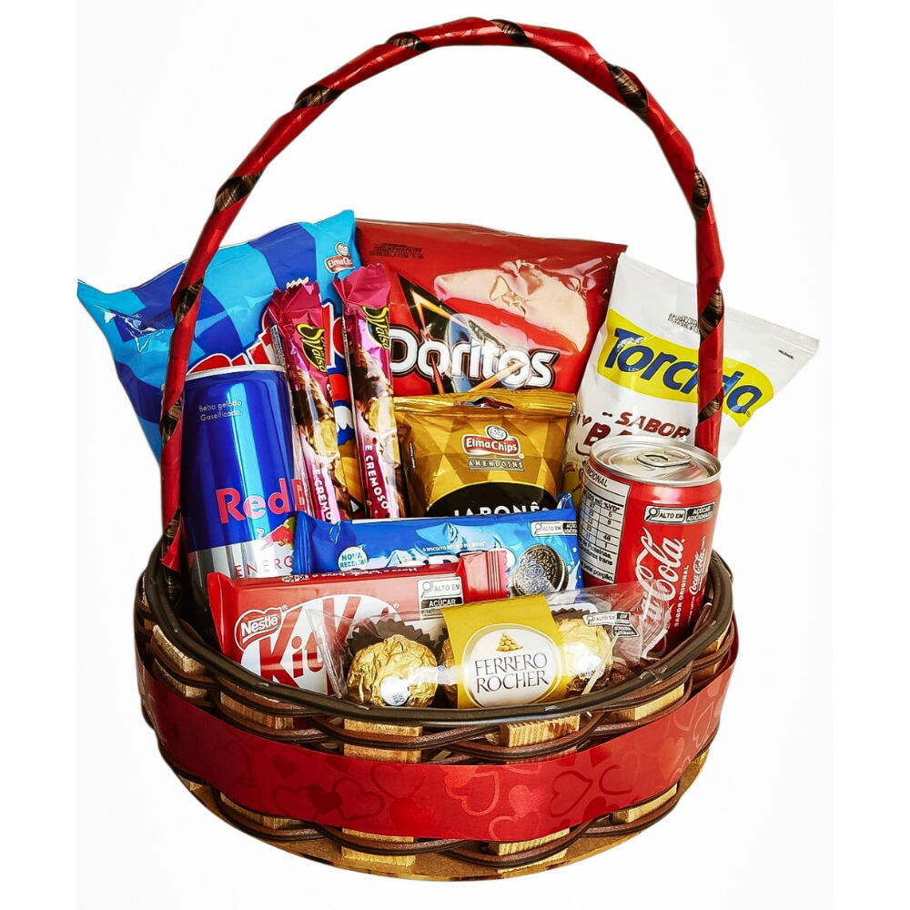 Desfrute de uma incrível experiência de sabor com esta deliciosa cesta de chocolates, perfeitamente composta por uma seleção de guloseimas que vão satisfazer todos os seus desejos. Esta cesta contém 1 Ruffles, 1 Doritos, 1 Torcida, 1 Amendoim, 2 Bombons, 1 Energético, 1 Coca, 1 Biscoito Oreo, 1 Kit Kat, 1 Ferrero com 3 unidades, tudo cuidadosamente embalado em um charmoso cesto. Aproveite também nosso prático kit de embalagens. Experimente este deleite, um prazer irresistível em cada mordida. Produto 4004