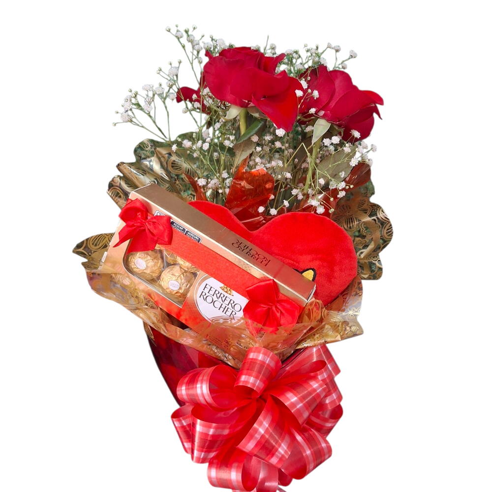 barra de chocolate - 1 un. rosa artificial - 2 un. cesta romantica - 10 un. ferrero rocher cx. c4 - 1 un. mini chapanhe - 1 un. tarça de vidro - 1 un. 1 bata picles - 1 un. 5 bombons sonho de valsa - 5 un.
