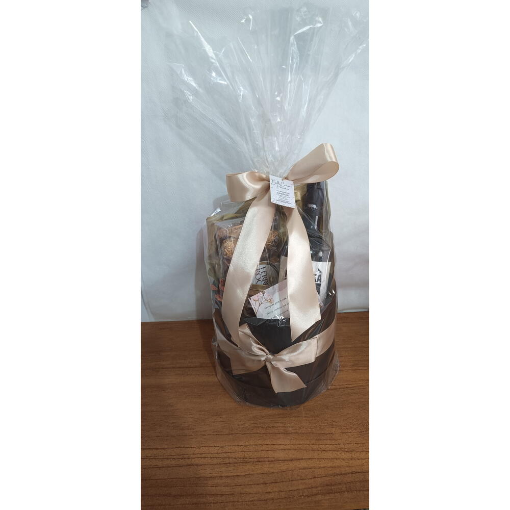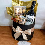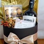 Presenteie seus entes queridos com a nossa requintada Cesta de Vinho e chocolate preenchida com qualidades premium e deliciosos produtos para celebrar as festividades. Esta cesta inclui um garrafa do vinho Hormiga Negra, famoso por seu sabor rico e aroma encantador, combinado perfeitamente com uma caixa com 12 unidades do luxuoso chocolate Ferrero Rocher. Além disso, para os amantes de petiscos, incluímos um mix de castanhas de primeira qualidade. Todas essas delícias são apresentadas numa elegante caixa de MDF, acompanhada de um cartão de mensagem, para que você possa expressar seus melhores desejos para a temporada. Ideal para presentear colegas de trabalho, amigos ou familiares.