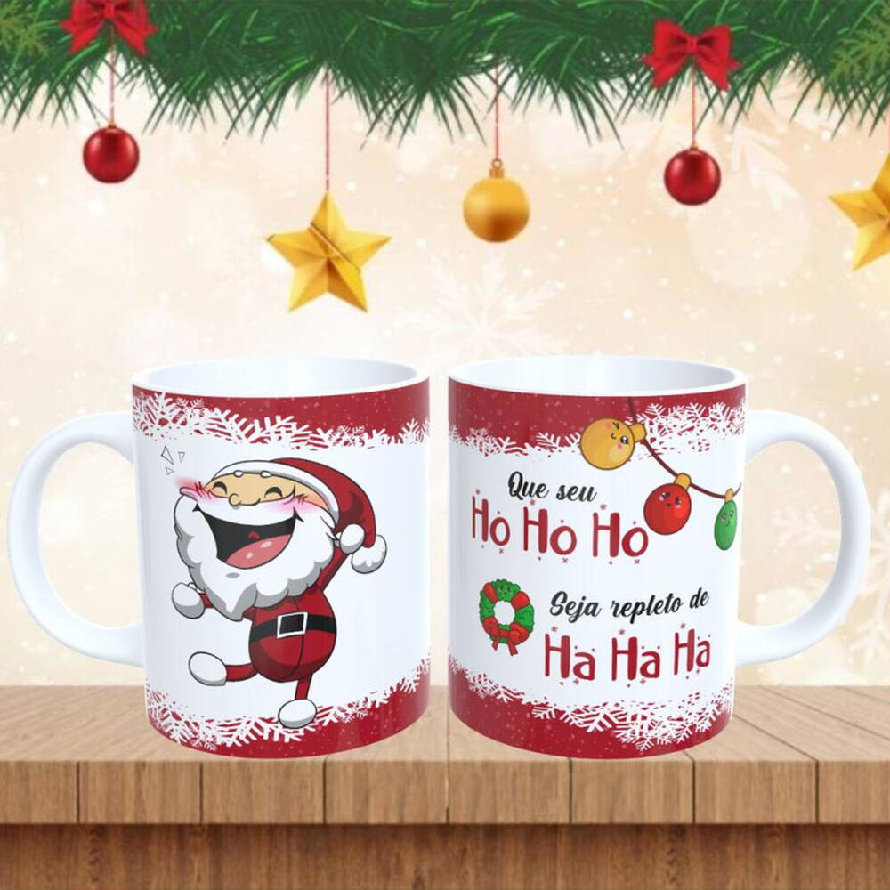 Cesta de Natal "Feliz Natal" com Panettone, Almofada e Caneca natal - Que o seu hohoho seja repleto de hahaha