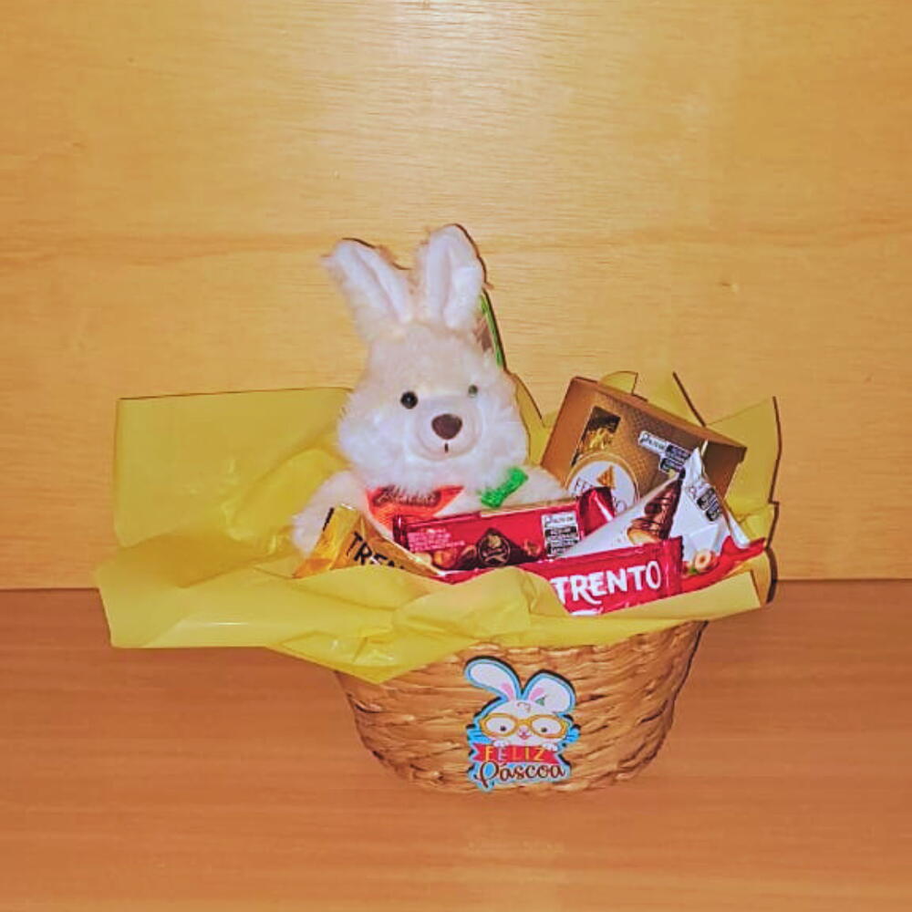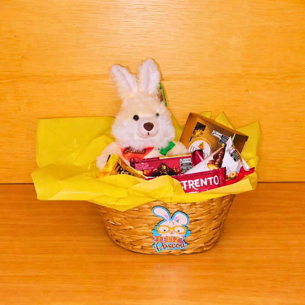 Cesta de Páscoa com Chocolates e Coelho de Pelúcia – O Presente Perfeito para Celebrar com Doçura e Carinho Surpreenda nesta Páscoa com uma cesta encantadora, que combina a fofura de um coelho de pelúcia com uma seleção especial de chocolates irresistíveis. Ideal para presentear familiares, amigos ou para decorar seu momento de celebração com muito sabor e ternura. Conteúdo da Cesta: 1 Coelho de pelúcia Fizzy FEC7187 (20 cm) – certificado pelo Inmetro (OCP 0061 / Registro 009 305 / 2022), garantindo qualidade e segurança. 1 Caixa de Bombons Ferrero Rocher com 4 unidades – sabor sofisticado e textura única. 1 Trento Speciale ao leite com avelã (26 g) – combinação perfeita de chocolate ao leite e avelãs. 1 Trento chocolate ao leite (29 g) – clássico e delicioso. 1 Kinder Bueno com recheio de leite e avelãs (43 g) – cremosidade e crocância em cada mordida. 1 Talento Avelãs (85 g) – chocolate ao leite com pedaços generosos de avelã. 1 cesta de taboa com pick decorativo Feliz Páscoa – charme e praticidade para apresentar os chocolates. Dimensões da Cesta: Altura: 23 cm Comprimento: 23 cm Largura: 12 cm Por que escolher nossa Cesta de Páscoa? Presente completo e encantador: combina a doçura dos chocolates mais desejados com a fofura do coelho de pelúcia, símbolo clássico da Páscoa. Qualidade certificada: o coelho de pelúcia possui certificação do Inmetro, assegurando durabilidade e segurança para todas as idades. Apresentação elegante: a cesta de tábua com o pick Feliz Páscoa deixa o presente ainda mais especial e pronto para encantar. Variedade de sabores: chocolates selecionados para agradar todos os paladares, desde o clássico ao sofisticado. Celebre a Páscoa com um gesto cheio de amor e sabor. Garanta já a sua Cesta de Páscoa com Chocolates e Coelho de Pelúcia e torne este momento inesquecível para quem você ama! Aproveite e faça desta Páscoa uma festa de carinho, alegria e muita doçura!