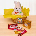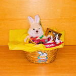 Cesta de pascoa com chocolates e coelho de pelucia