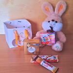 caixa de bombom ferrero rocher - 1 un. kinder bueno white - 1 un. nutella by ready - 1 un. coelho de pelúcia com sacolinha 20cm - 1 un. kinder ovo com 2 unidades - 1 un.