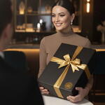 flores decorativas - 1 un. torradinhas finas em caixinha decorada - 1 un. mix de nuts premium - 1 un. bruschettas finas saborizadas - 1 un. cesta de presente gourmet - 1 un. caixa preta elegante com laço de cetim - 1 un. espumante chandon brut - 1 un. antepasto de tomate seco gourmet - 1 un. balas butter toffee (10 unidades) - 1 un.
