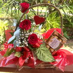 ferreiro rocher 100g - 1 un. cesta rústica - 1 un. arranjo com 3 rosa vermelhas - 3 un.
