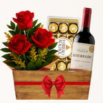 Cesta de Rosas, Vinho e Ferrero Rocher