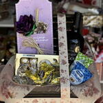 bombons - 2 un. baú de madeira - 1 un. amendoins - 3 un. embalagem + laço - 1 un. vinho pérgola - 1 un. cartão presente com 1 rosa de cetim - 1 un. 1 ferrero rocher - 8 un. bomboniere de vidro - 1 un.