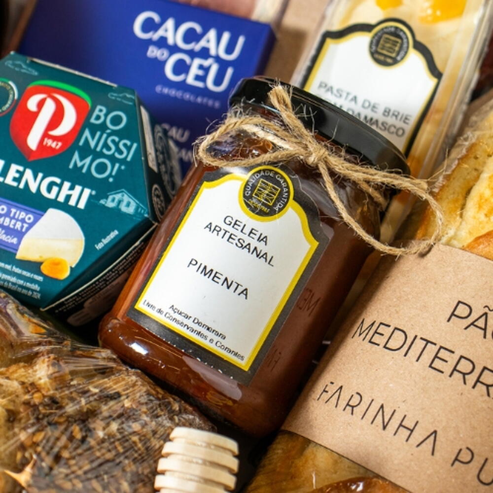Este presente gastronômico exquisito contém uma seleção de deliciosos produtos gourmet para saborear e apreciar. Inclui uma unidade de mel puro e doce, geleia de pimenta picante e intensa e dois brigadeiros belga suaves e cremosos. Para complementar, um pão mediterrâneo e um pão levain, ambos feitos de farinha pura e preparados tradicionalmente para um sabor autêntico. Também dispõe de uma pasta de brie com damasco ácido-doce, um vinho Pinot Noir Viento del Mar suave e elegante, uma tábua de frios da Ceratti para uma degustação rica em sabores, um chocolate Cacau de Céu Nibs requintado e um queijo Camembert Polenghi cremoso e suave. Tudo elegante e sabiamente escolhido para uma verdadeira experiência epicurista.