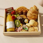 Croissant, Pãezinhos Selecionados, Pães de Queijo Recheados, Waffle ou Stroopwafel, Seleção de Biscoitos, Geleia, Mel, Manteiga, 1 Queijo, 1 Charcutaria, Torradas, Frutas Frescas, Castanhas em barra, Chocolate, Chá inglês Twinings, Suco Integral 300ml! *Obs: Itens sujeitos à substituição por equivalentes de mesmo valor ou superior.