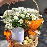 Flores que encantam, doces que abraçam! Nossa cesta de vime com alça reúne o frescor das margaridas, o sabor caseiro dos sequilhos e a sofisticação do Ferrero Rocher. Um presente completo para transformar qualquer momento em pura delicadeza.