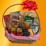 Surpreenda seu pai ou celebre qualquer ocasião especial com esta enorme cesta gourmet! Repleta de delícias como presunto cru, linguiça defumada, queijos finos, biscoitos sortidos e cervejas. Tudo decorado com um laço vermelho encantador. Um presente sofisticado que combina sabor e estilo, perfeito para momentos inesquecíveis. 🎁🍷🧀