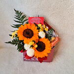 girassol - 2 un. ferrero - 3 un. caixa envelope - 1 un. mini espumante - 1 un.