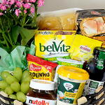 biscoito belvita 75g - 1 un. uvas - 1 un. bolinho bauducco 40g - 1 un. nutella 140g - 1 un. torrada bauducco 142g - 1 un. pães brioche - 2 un. suco 250ml - 1 un. requeijão cremoso 200g - 1 un. biscoito itegral nesfit 20g cada - 2 un. capuccino 20g - 1 un. vaso de kalanchoe (a cor varia conforme estoque) - 1 un. 250g - 1 un.