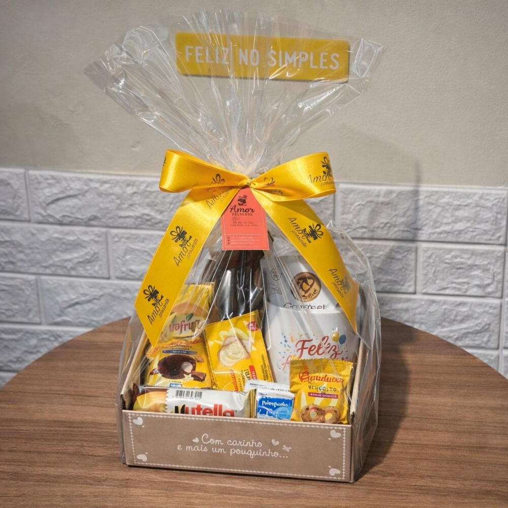 A Cesta Feliz Aniversário com Café Doçuras é um presente completo para celebrar com carinho. Acompanha caneca temática “Feliz Aniversário”, café gourmet, suco integral, Nutella B-Ready e uma seleção de bolinhos e biscoitos Bauducco. Um gesto afetuoso, bonito e pronto para surpreender no dia especial.