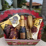 alfajor - 1 un. chandon baby - 1 un. barra chocolate alpino - 1 un. cookies alpino - 1 un. taça de champanhe(acrilica) - 1 un. caixinha com visor - 1 un. cesta cachepot grande - 1 un. bombom ouro branco ou alpino - 1 un.