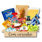 kinder ovo - 1 un. bolinho bauducco - 1 un. toddynho - 1 un. nutella 140g - 1 un. iogurte infantil - 1 un. oreo 36g - 2 un. porção de uva 120g - 1 un. requeijão danubio 10g - 2 un. suco natural (sabor variado) 300ml - 1 un. sucrilhos tradicional - 1 un. queijo mussarela ou prato 100g - 1 un. croissant parisiense - 1 un.