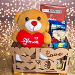 Cesta "I Love You" com Chocolates e Pelucia com coração "Amor"