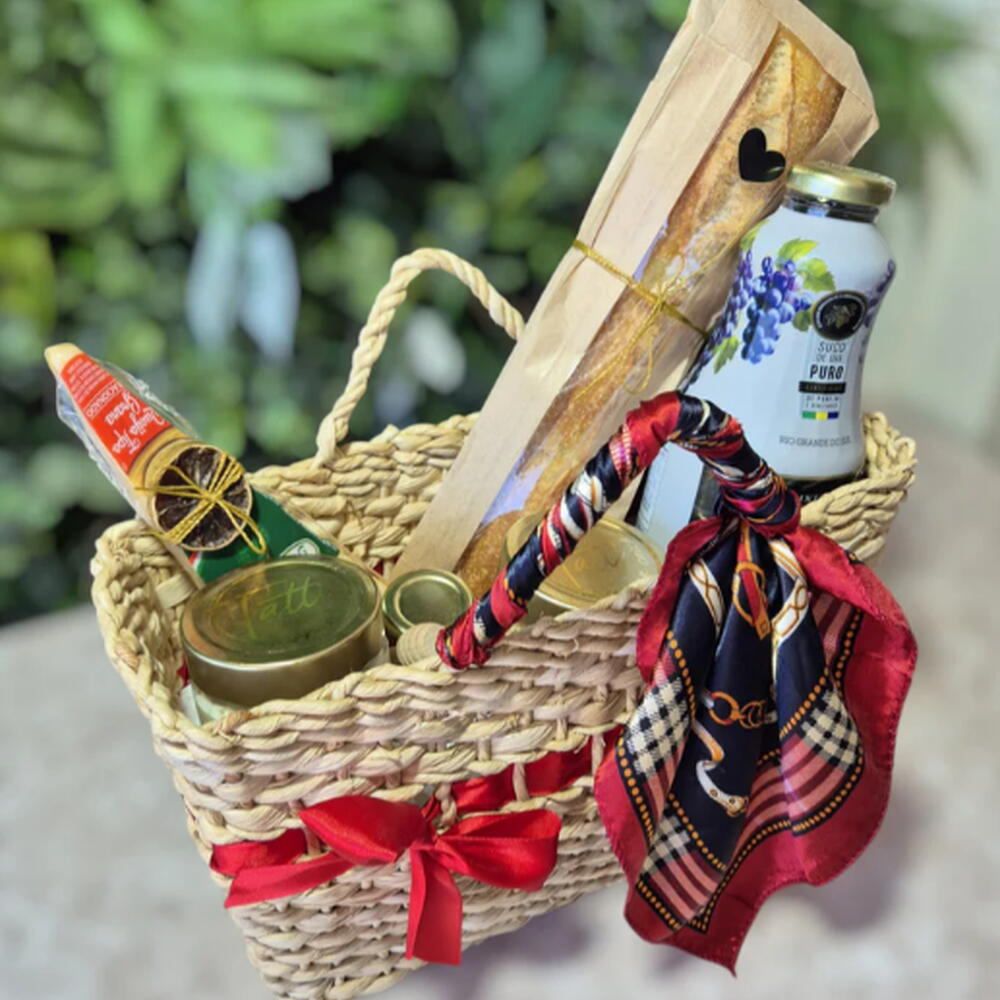 Cada detalhe da nossa exclusiva Bolsa de palha foi pensado para proporcionar uma experiência única. Dentro, você encontrará itens selecionados com o maior cuidado, muitos dos quais trazem o sabor e a tradição da Itália. E o que torna este presente ainda mais especial é que, após saborear cada item, a pessoa presenteada poderá guardar para sempre não apenas a lembrança desse momento único, mas também uma linda bolsa, perfeita para embelezar muitas outras ocasiões. Neste presente temos: Bolsa de palha 30x22cm, Garrafa de Suco de 1000ml (checar disponibilidade dos sabores), Queijo Grana Padano, Pote de vidro com mix de Nuts (castanhas, amêndoas defumadas, nozes), mini vidro com Mel, Antepasto no pote de vidro, e um delicioso Pão Ciabata.