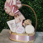 ursinho - 1 un. laço - 1 un. sabonete - 2 un. embalagem celofane - 1 un. cesta decorada com laço - 1 un. creme natura - 1 un. caixa sabonete - 1 un.