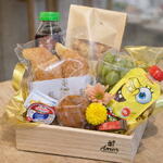 biscoito amanteigado - 1 un. bolinho bauducco 40g - 1 un. geleia blister - 1 un. cream chesse blister - 1 un. iogurte infantil - 1 un. suco natural 300ml - 1 un. uva porção 80g - 1 un. mini croissant parisiense - 2 un.