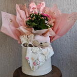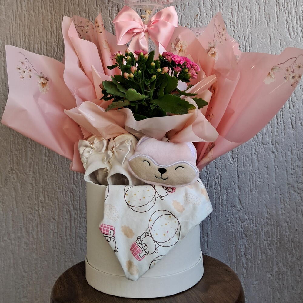 Surpreenda com nossa cesta de maternidade única e delicada. Ela inclui uma caixa box com acabamento impecável indicada para organização, uma naninha especialmente suave para proporcionar sonos tranquilos ao bebê e um par de sapatinhos em tecido conforme a idade recém-nascida para acariciar os pés pequeninos. Além desses itens indispensáveis, acompanha a bela flor natural calandiva ou kalanchoe, proporcionando um toque de frescor e natureza, e um balão bubble com a escrita bem vinda para expressar a alegria pelo nascimento. Desenhada com amor, nossa cesta de maternidade é perfeita para celebrar o início dessa nova jornada.