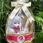 caixa de chocolate - 1 un. ferrero rocher - 8 un. cesta - 1 un. embalagem celofane - 1 un. laço em cetim - 1 un. pelucia 1824 cm - 1 un.