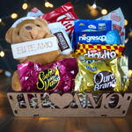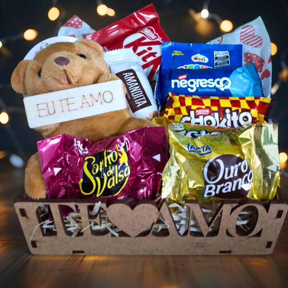 Cesta "Te Amo" com Chocolates e Mini Urso "Eu Te Amo" - Mini Encanto