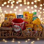 Cesta Natal de Cafe da Manhã "Feliz Natal" com Chocottone, Mini Urso e Caneca