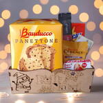 Cesta Natal "Flork Feliz Natal" com Panettone para Cafe da Manhã e Tarde
