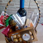 Presenteie com um elegante conjunto que combina sabor e sofisticação. Este pacote inclui uma garrafa de vinho requintado, duas taças de cristal borosilicato de alta qualidade, uma caixa de chocolates Ferrero luxuosos e uma seleção delicada de 5 petiscos saborosos. Um presente perfeito para comemorar datas especiais ou simplesmente para mostrar o seu apreço.