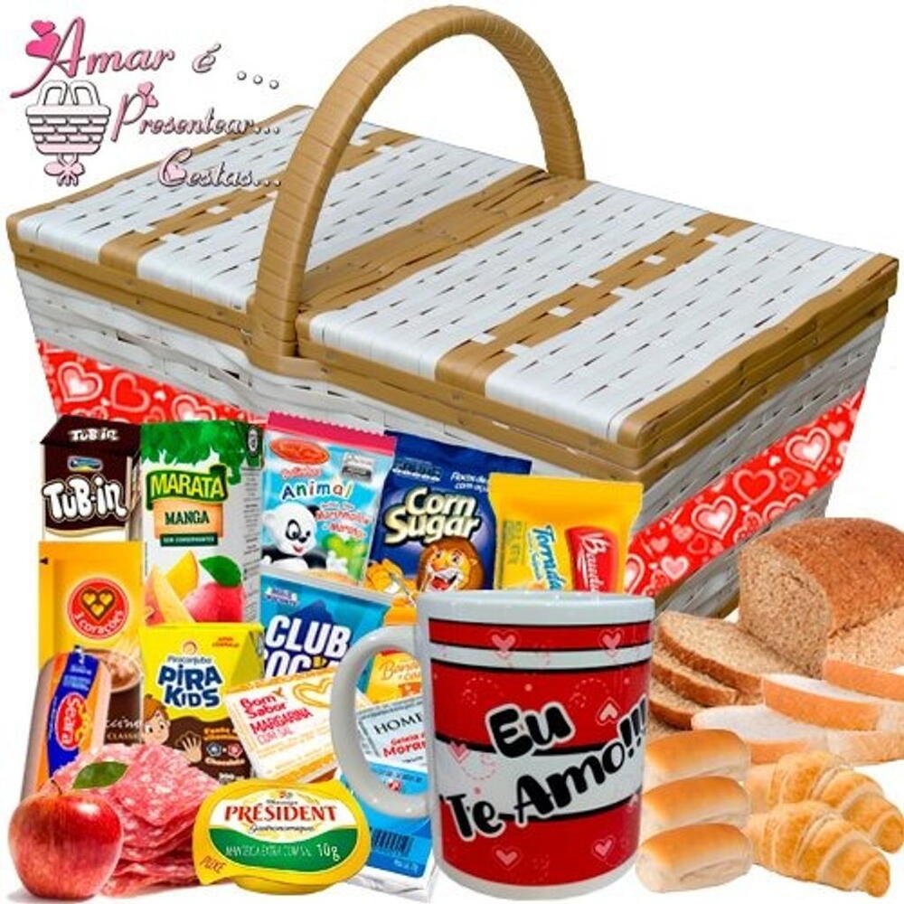 torradas - 1 un. iogurte - 1 un. barrinha de cereal - 1 un. pão de mel - 1 un. club social - 1 un. bolinho - 1 un. achocolatado - 1 un. cream cheese - 1 un. geleias - 2 un. cappuccino - 1 un. caneca de porcelana - 1 un. sachês de adoçante - 2 un. sachês de açúcar - 1 un. fatias de queijo - 1 un. fatias de presunto - 3 un. cereal matinal - 1 un. biscoito maria - 1 un. patê - 1 un. frutas da época - 2 un. maxi goiabinha - 1 un. suco caixinha - 1 un. biscoito belvita 25g - 1 un. bebida láctea - 1 un. biscoito amanteigado sabor banana com canela - 1 un. biscoito amanteigado sabor chocolate - 1 un. biscoito amanteigado sabor coco ou leite - 1 un. mini bolacha salgada - 1 un. biscoito tubin recheado - 1 un. docinhos ducrem - 2 un. bandeja de salame fatiado - 1 un. mini manteigas - 2 un. fatias de pão branco - 3 un.
