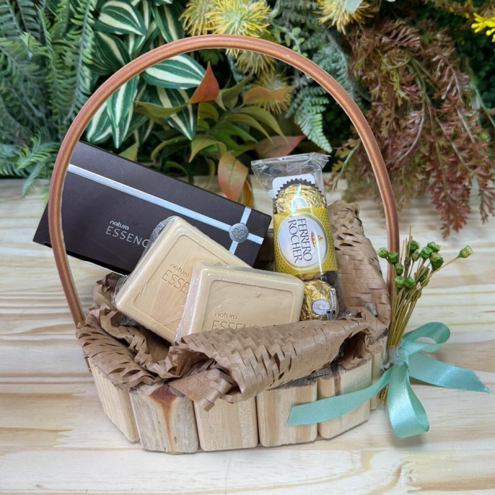 Presenteie o homem especial na sua vida com esta Cesta para Homens. Composta por 2 unidades de sabonete essencial natura, perfeitos para uma experiência de banho revigorante e cheia de frescor. Não podia faltar um toque de doçura, por isso incluímos 1 unidade de Ferrero Rocher com 3 deliciosos bombons, perfeito para aquele momento de indulgência. Uma combinação perfeita de cuidados pessoais e prazer gourmet.