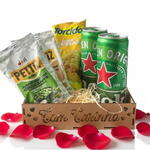 cervejas heineken - 2 un. snacks variados - 1 un. caixa decorativa “com carinho” - 1 un.