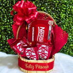Desfrute de uma deliciosa cesta de chocolates composta por uma irresistível caixa de bombons Nestlé e três unidades do amado chocolate Kit Kat. Aprecie estes deleites deliciosos, apresentados numa cesta encantadora, apropriadamente embalada e finalizada com um artesanal laço vermelho para um toque de elegância extra. Este presente é perfeito para qualquer amante de chocolate em sua vida.