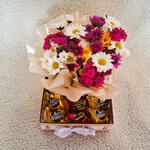 Delicie-se e encante-se com este maravilhoso kit de Flores e Chocolate. Composto por um deslumbrante arranjo de Flores do Campo Coloridas, que promete alegrar qualquer ambiente com sua variedade de cores vibrantes. Para tornar este conjunto ainda mais especial, incluímos 6 unidades de irresistíveis chocolates Ouro Branco ou Sonho de Valsa. Um presente perfeito para ocasiões especiais ou para simplesmente demonstrar o seu carinho.