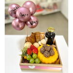 Surpreenda alguém especial com nossa Cesta de Aniversário excepcionalmente requintada. Ela contém uma seleção diversificada de delícias: um delicioso suco de uva para refrescar, dez unidades de salame saboroso, geleia doce para complementar, três unidades de pão de queijo tradicional brasileiro, waffle crocante, damascos suculentos e morangos frescos. E não termina por aqui! Esta cesta também possui quatro biscoitos folhados leves e apetitosos, uma uva verde refrescante, um croissant folhado de manteiga irresistível e um bolo sofisticado com brigadeiros. Além disso, contém cinco biscoitos caramelizados deliciosos. E o toque final fica por conta do topo de bexigas animado e festivo. Esta cesta é perfeita para tornar o aniversário de alguém ainda mais especial e memorável!