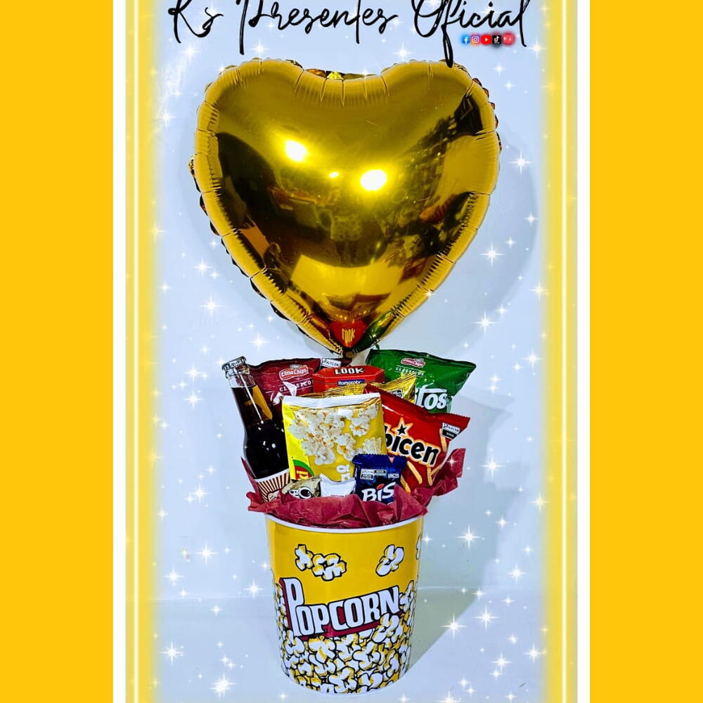 balão metalizado - 1 un. bombom lacta - 2 un. balde de pipoca - 1 gr. caixa look - 1 un. pacote flavored - 1 un. pacote baconzitos - 1 un. pacote ebicen - 1 un. pacote cebolitos - 1 un. tubaina original long neck - 1 un. barra bis xtra tradicional - 1 un. pacote pipoca de micro-ondas - 1 un.
