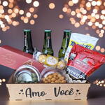 Cesta Premium com Cervejas, Guloseimas e Cacau Show "Amo Você"
