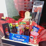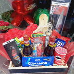 torcida - 1 un. doritos - 1 un. amendoim - 1 un. chocolate bis - 1 un. pipoca de microondas - 1 un. cesta de pinus decorada - 1 un. pelúcia coração ( pode variar ) - 1 un. abridor de cerveja - 1 un. batata pingles - 1 un. tábua de corte - 1 un. kit para churrasco - 1 un. chocolate barra 80g - 1 un. cerveja brahma longnek - 2 un. uma tulipa de vidro - 1 un.