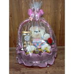 rosa - 1 un. embalagem - 1 un. bombons - 6 un. caixa de ferrero rocher - 1 un. urso de pelucia - 1 un. cesta rosa decorada - 1 un.